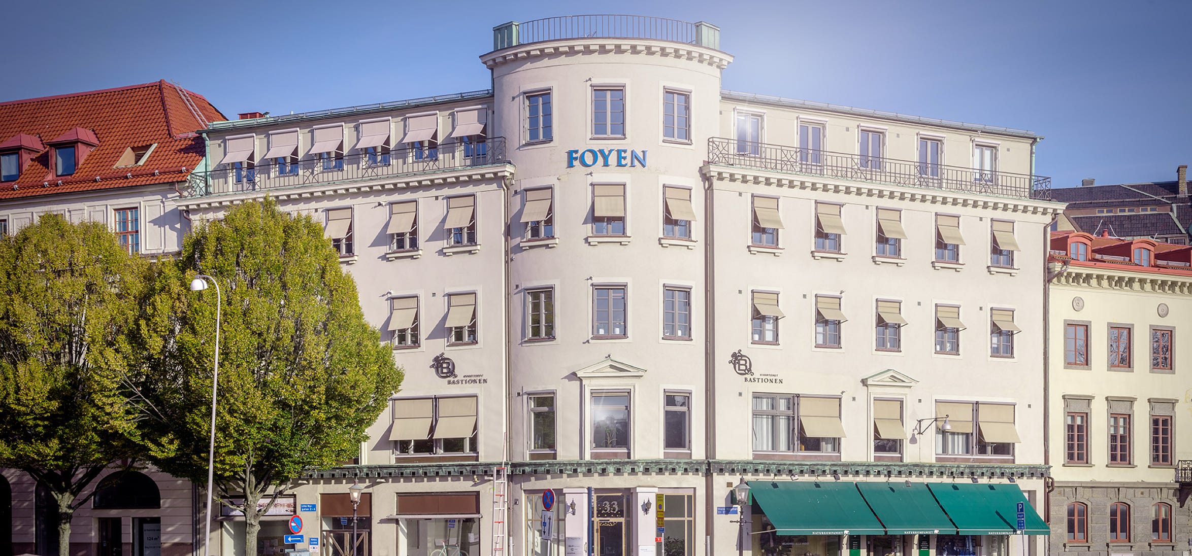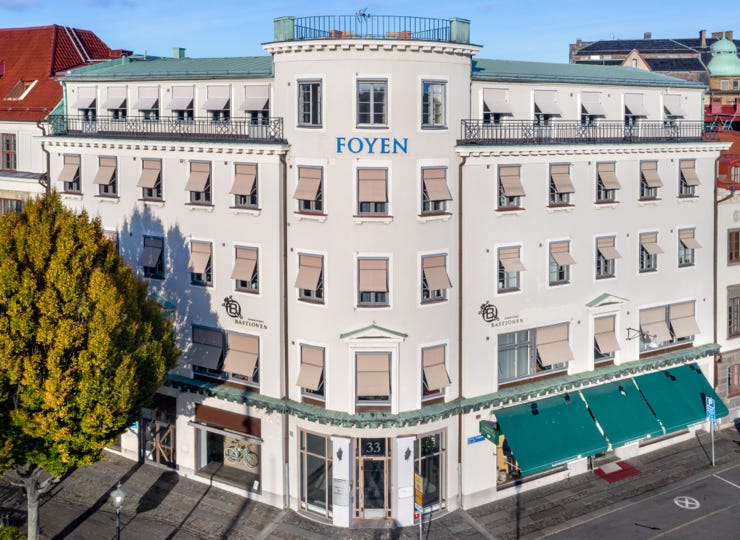 Här har vi för Novire utfört fönsterbyten på en del av Foyen-huset. Fyrtio stycken fönster har ersatts med nya. I jobbet ingick även att byta ut trälister på utsidan samt lister på insidan. Fasaden på huset har bevarandekrav vilket innebar att nya fönster var lika i utförandet som de befintliga.
